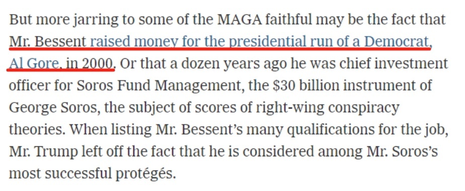 著述例如说,财政部长东说念主选贝森特并非一开动就信奉“让好意思国再次伟大”,他曾在2000年为民主党总统候选东说念主阿尔·戈尔的竞选活动筹集资金。但贝森特招供特朗普的关税策略,不外他也指出,随意征收关税对幸免经济冲击至关迫切。