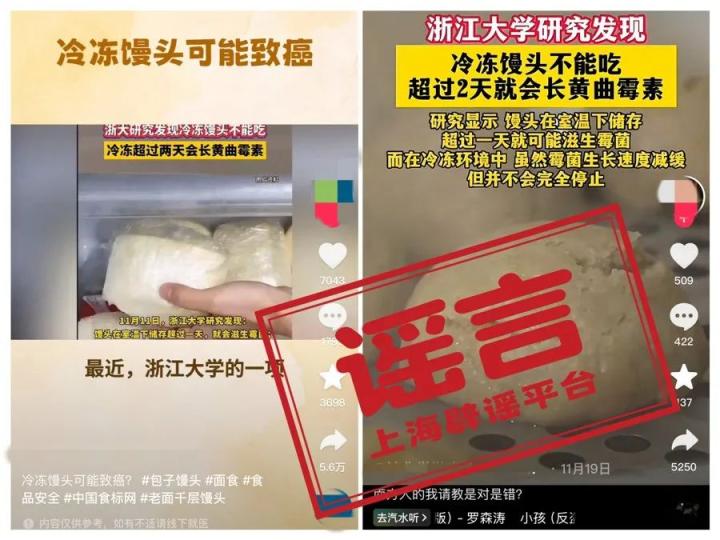 最近,一条宣称“浙大商讨发现:冷冻馒头不成吃,冷冻非常两天会长黄曲霉素”的短视频登上多个平台的热搜榜。但该音问很快被中国科协等专科机构贯通,默示徒有虚名不正确。随后,浙江大学生物系统工程与食物科学学院副院长刘东红在接受媒体时也默示:“浙江大学莫得作念过冷冻馒头产生黄曲霉毒素的商讨。”